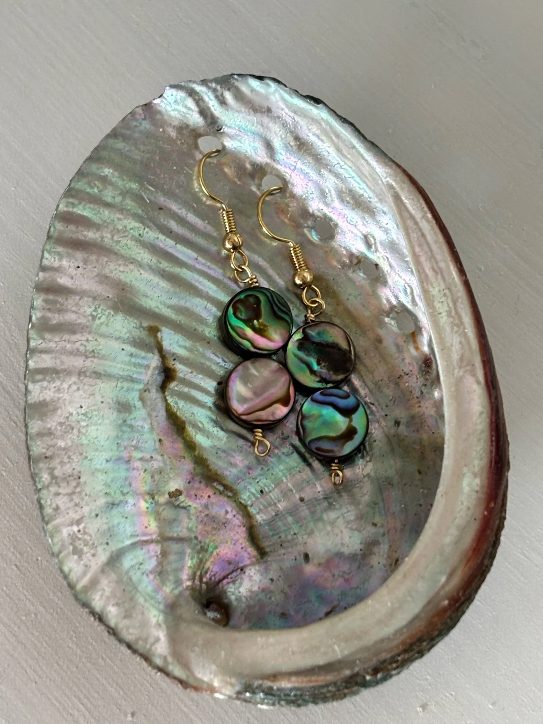 Handmade in San Diego using ethically sourced abalone. 14k gold filled fish hooks that are ocean, shower and sweat safe- San Diego Safe!