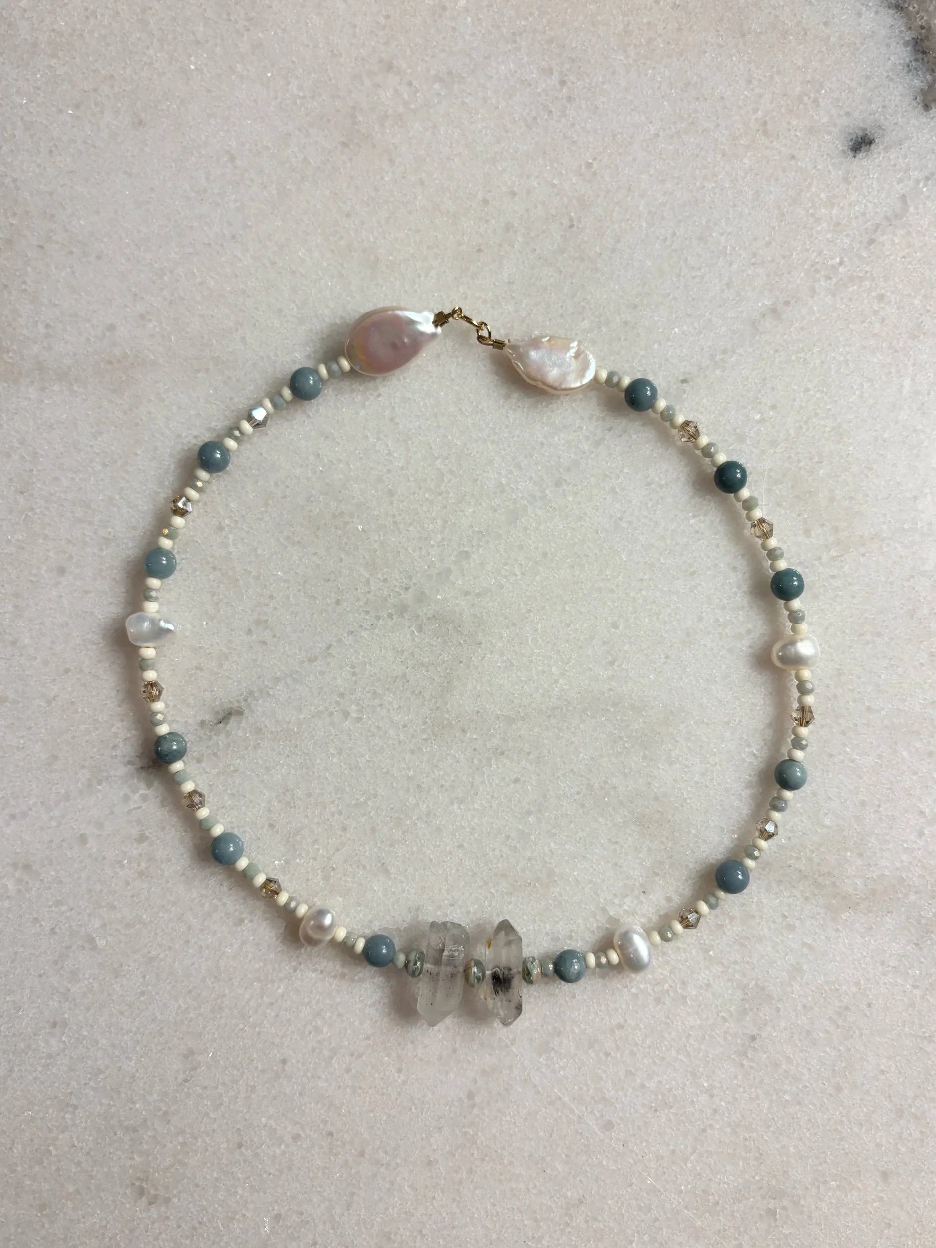 Jewelry Store › Arctic Ice Pearl Choker Arctic Ice Pearl Choker $110.00 White large freshwater pearl & quartz choker. 16 inches & adjustable. Handmade White large freshwater pearl & quartz choker. 16 inches & adjustable. Handmade Purchase Added! You Might Also Like Mermaid Peal Necklace Poinsettia Pearl Choker Crossroads Pearl Necklace Low Tide Pearl Necklace Fresh Dip Choker