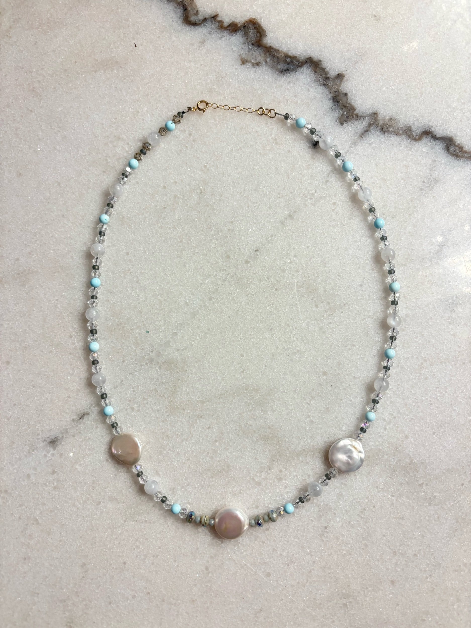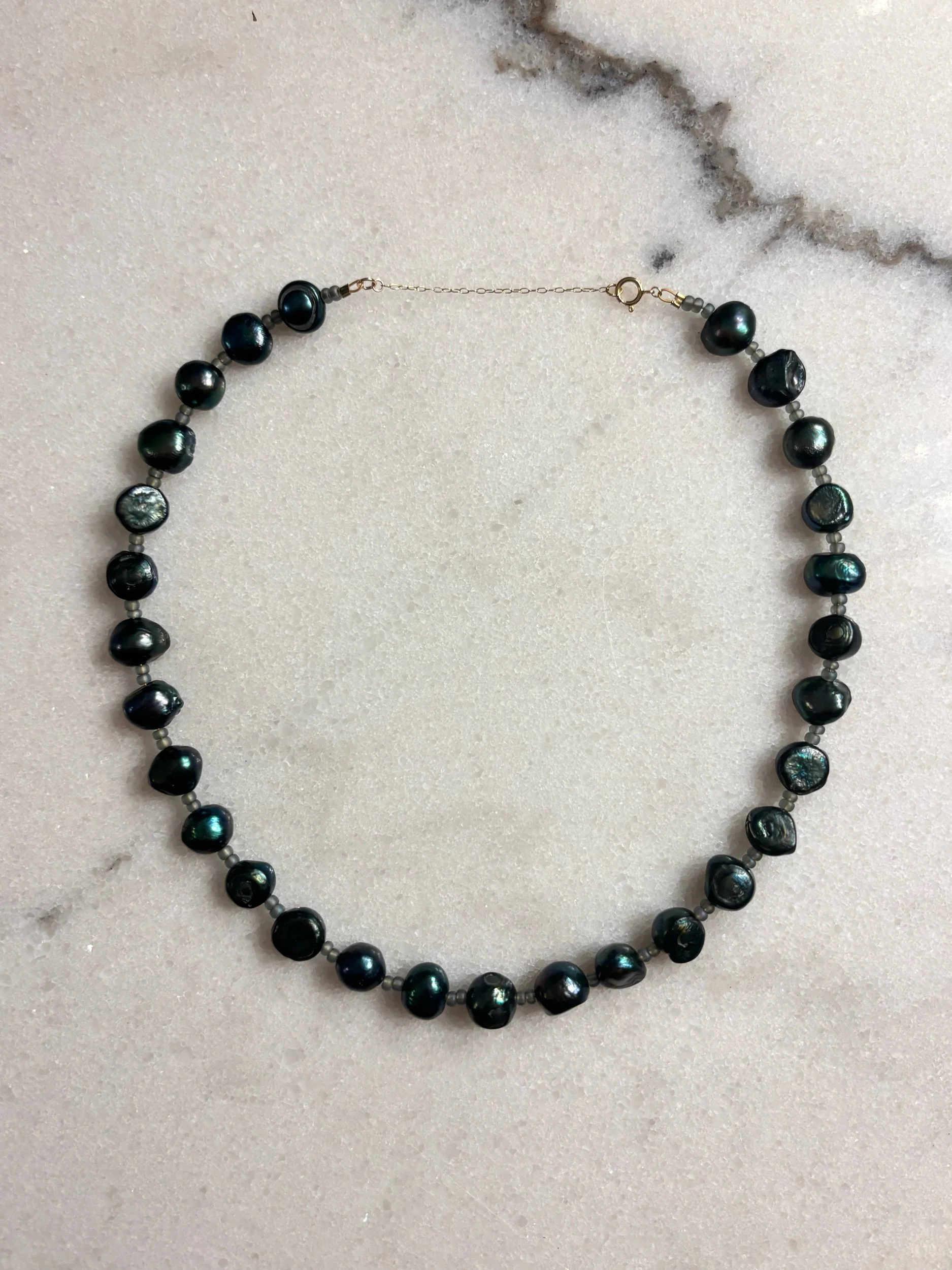 Jewelry Store › Deep Blue Pearl Choker Deep Blue Pearl Choker $60.00 Navy blue freshwater pearl choker with green Czech beads. 18 inch & adjustable. Handmade Navy blue freshwater pearl choker with green Czech beads. 18 inch & adjustable. Handmade Add To Beach Bag Added! You Might Also Like Sandy Siren Pearl Bracelet Lucky Penny Choker The Oceania Choker Aurora Hand Chain Mermaid Peal Necklace